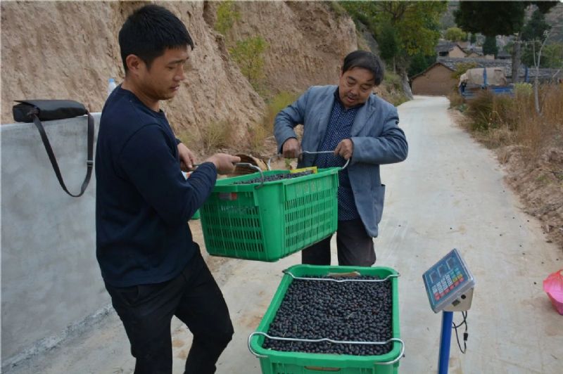在崖角村,老百姓們把采摘好的果子背到收購現(xiàn)場(chǎng)按序交售,村民趙志曹說:“今年祥宇公司進(jìn)村收購,