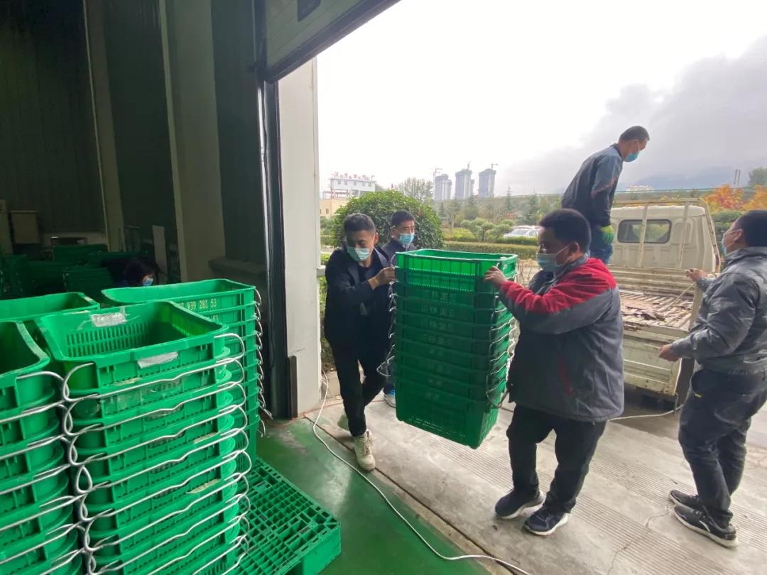 鮮果收購現(xiàn)場(chǎng),所有工作人員都佩戴好口罩,過磅、驗(yàn)果、卸車、入庫等工作在有序進(jìn)行。