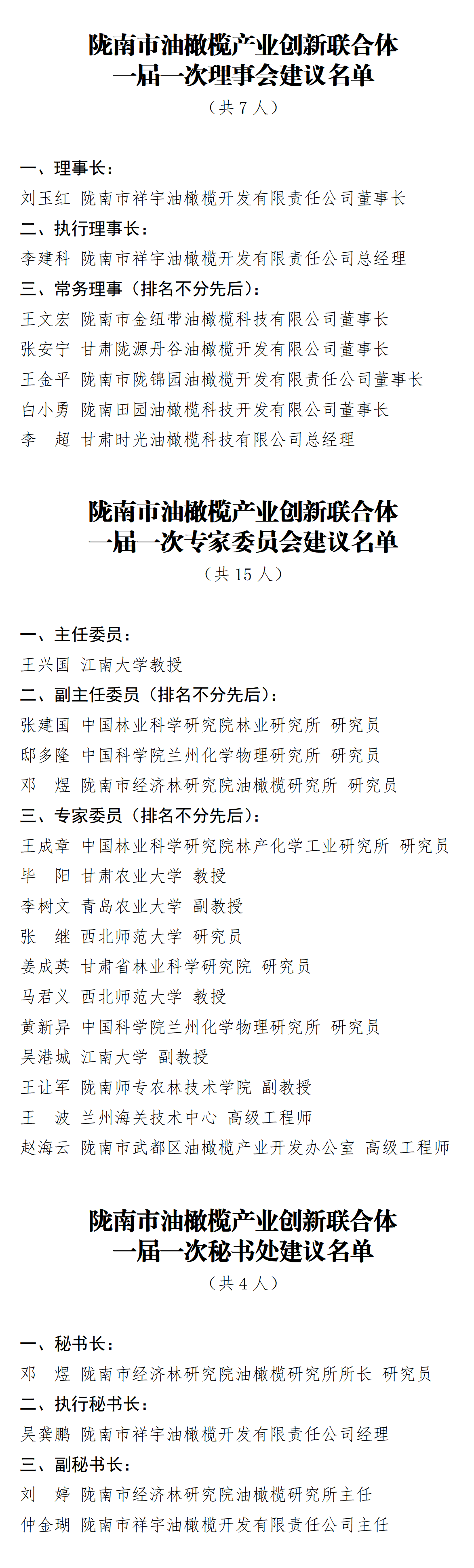 理事會(huì)、專家委員會(huì)、秘書(shū)處建議名單,簽署聯(lián)合體協(xié)議。