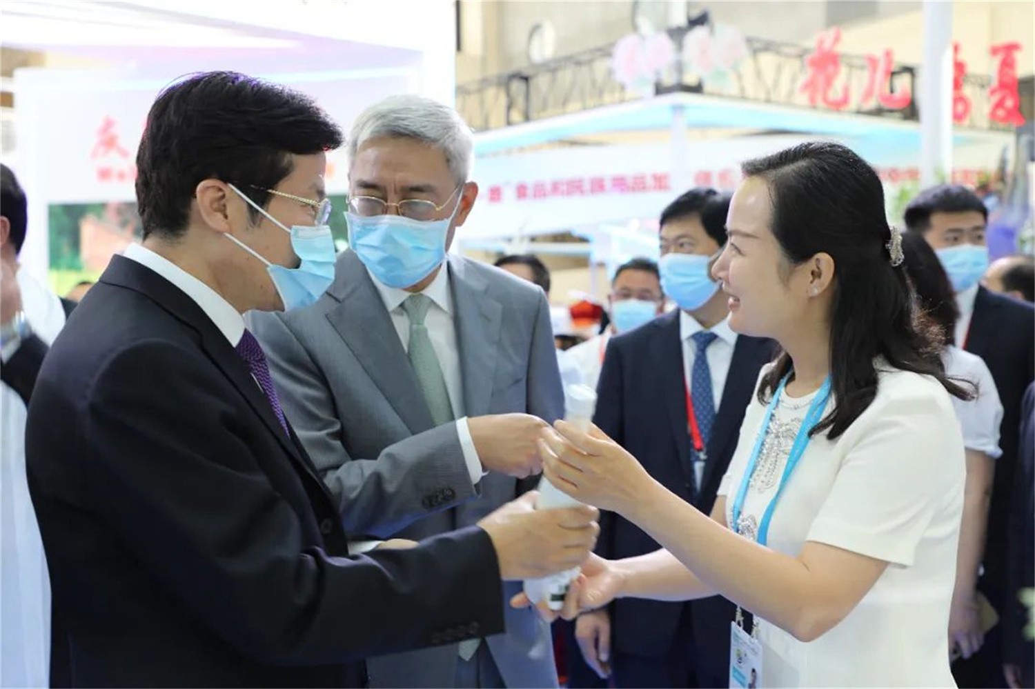 省市領(lǐng)導(dǎo)走進(jìn)隴南館,祥宇公司董事長劉玉紅邀請(qǐng)各位領(lǐng)導(dǎo)品鑒了祥宇系列產(chǎn)品,