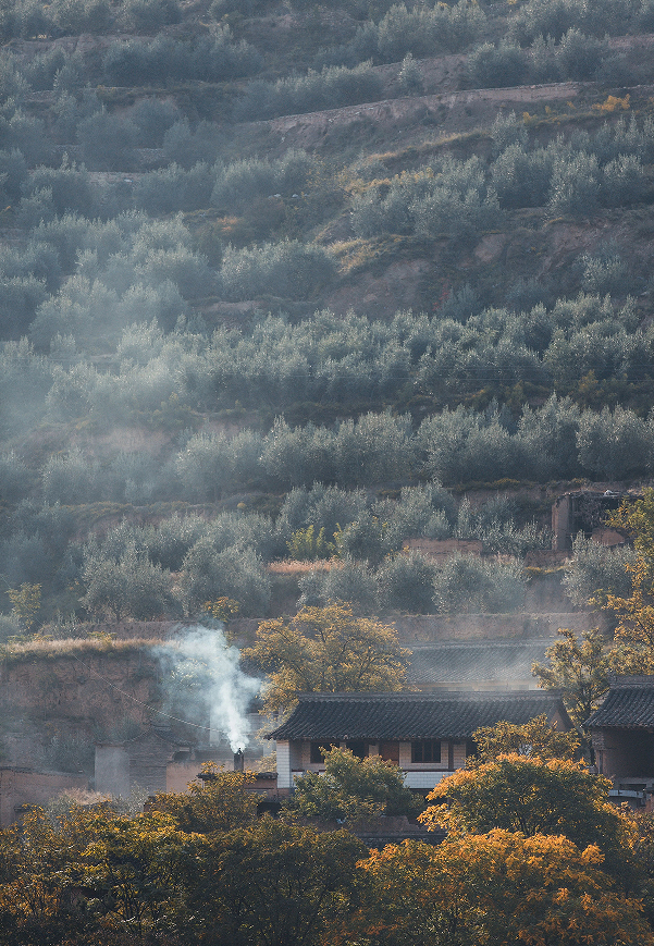 炊煙在橄欖樹(shù)葉間隙里飄舞